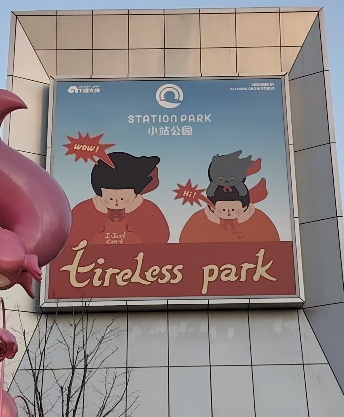 去了平西府地铁站新开的小站公园,公园用的一个人物形象名字是“下腰女孩(Tireless Girl)”。虽然我能勉强搞明白下腰和 Tireless 的关系,但这个翻译实在是太奇怪了。