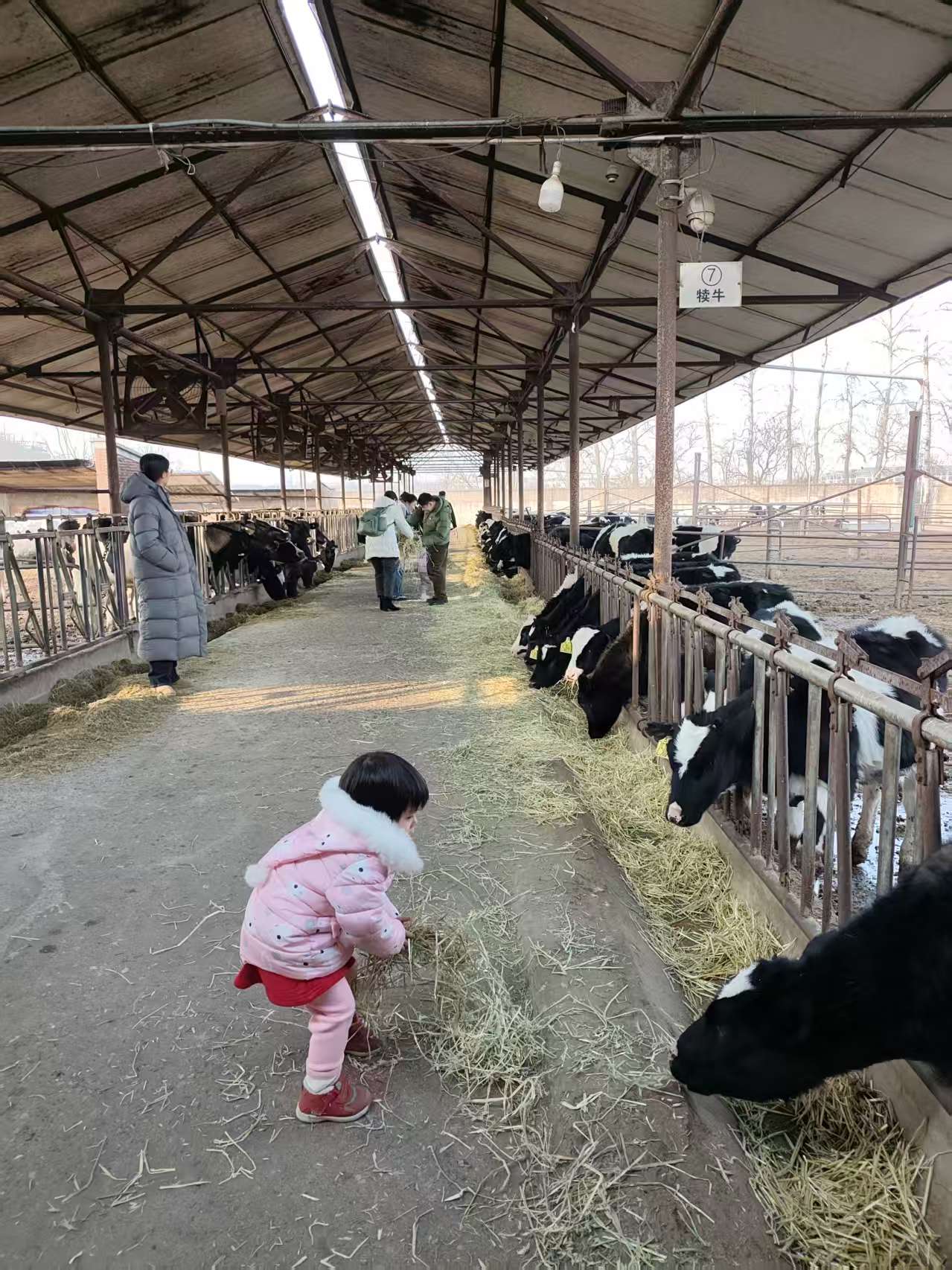 里面有从刚出生到三四岁的奶牛,可以自己去喂,小孩抱着草料来回跑喂了快一个小时。